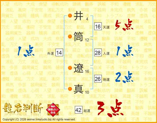 井(4画)筒(12画) 遼(16画)真(10画)