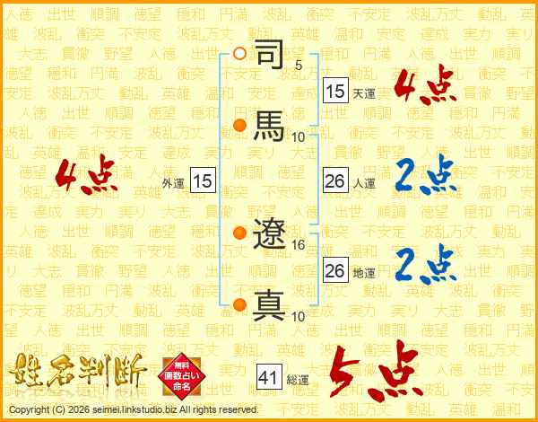 司馬遼真さんの総運は41画の5点!