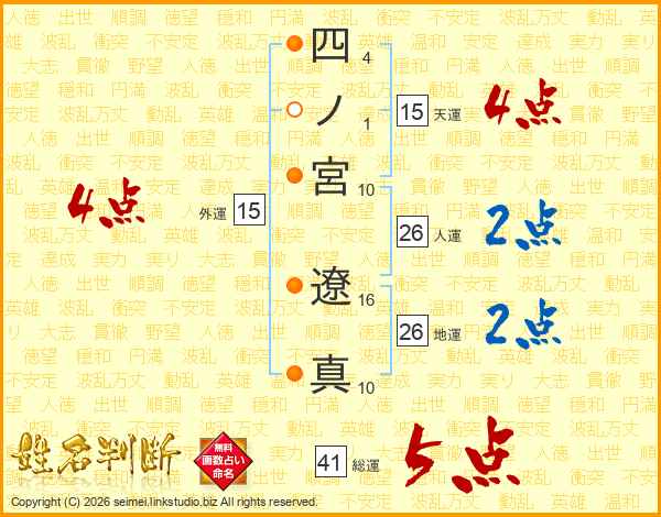 四ノ宮遼真さんの総運は41画の5点!