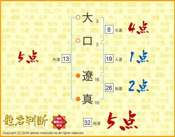 大口遼真さんの総運は32画の5点!