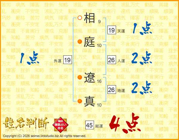 相庭遼真さんの総運は45画の4点!