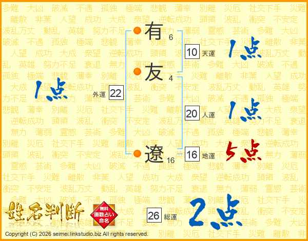 有友遼さんの総運は26画の2点!
