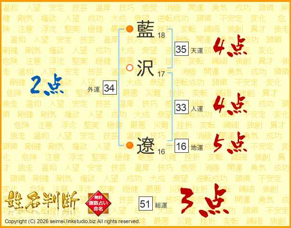 藍沢遼さんの人運は33画の4点!