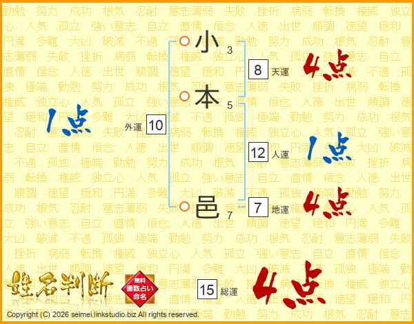 小本邑さんの総運は15画の4点!