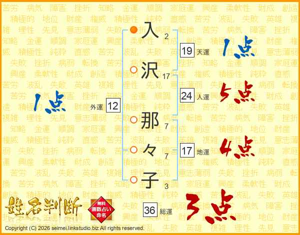 入沢那々子さんの人運は24画の5点!