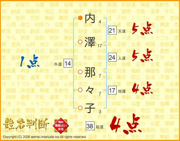 内(4画)澤(17画) 那(7画)々(7画)子(3画)