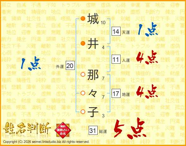 城(10画)井(4画) 那(7画)々(7画)子(3画)