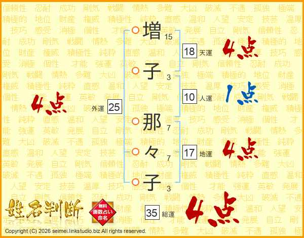 増(15画)子(3画) 那(7画)々(7画)子(3画)