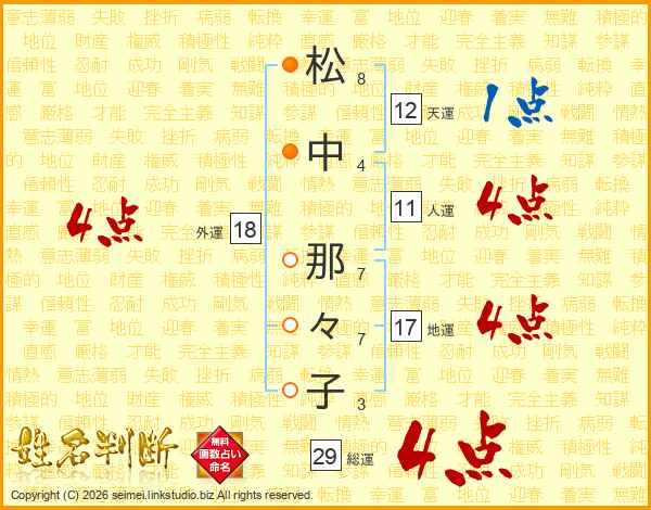松中那々子さんの総運は29画の4点!