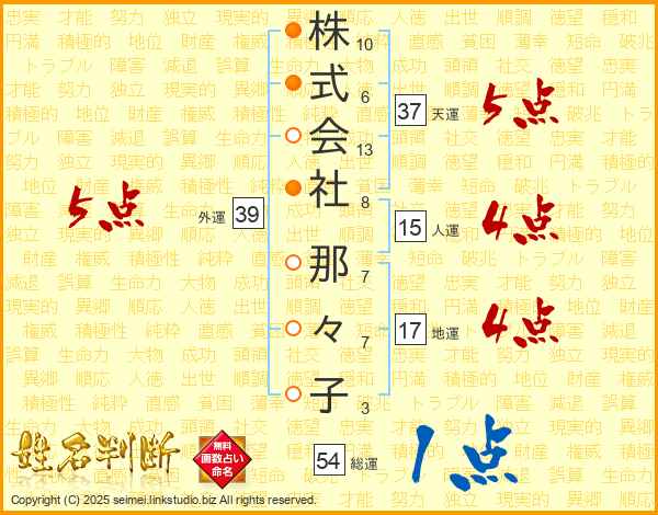 株式会社那々子さんの外運は39画の5点!