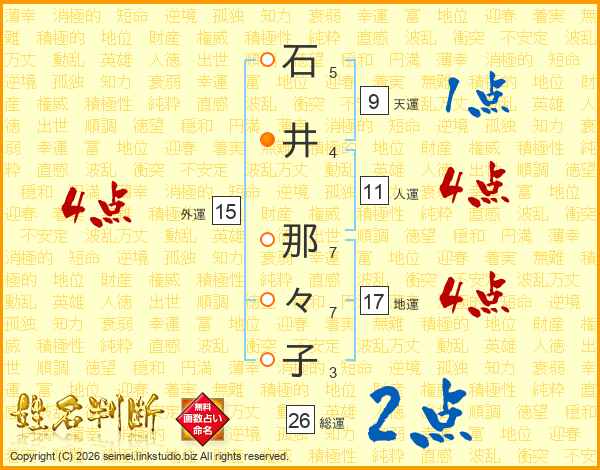 石井那々子さんの人運は11画の4点!