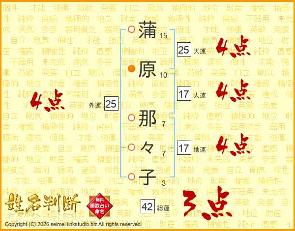 蒲原那々子さんの天運は25画の4点!