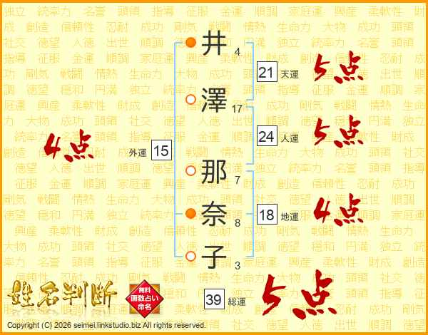 井澤那奈子さんの総運は39画の5点!