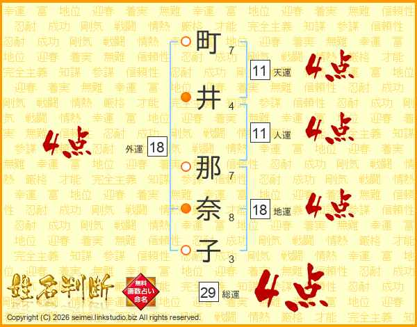 町(7画)井(4画) 那(7画)奈(8画)子(3画)