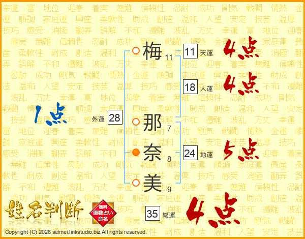 梅那奈美さんの総運は35画の4点!