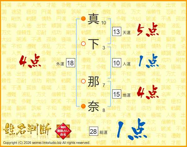 真下那奈さんの外運は18画の4点!
