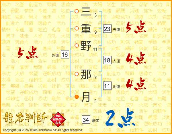 三重野那月さんの外運は16画の5点!