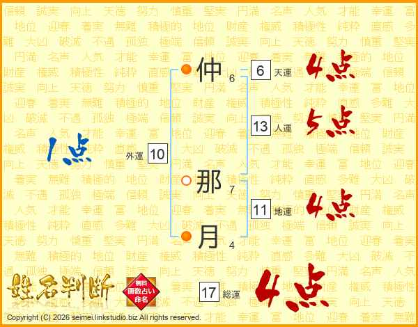 仲那月さんの総運は17画の4点!