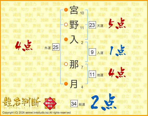 宮野入那月さんの外運は25画の4点!