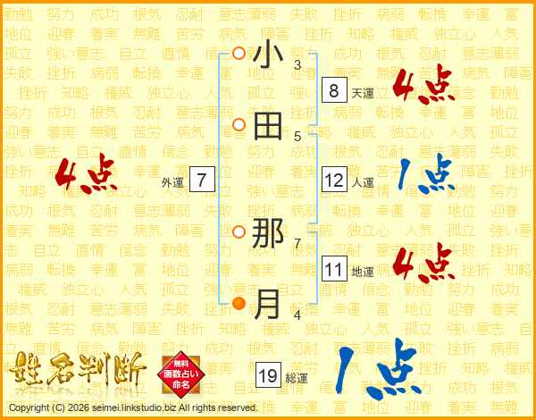 小田那月さんの総運は19画の1点!