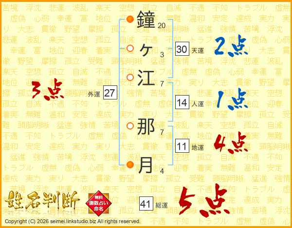 鐘ヶ江那月さんの総運は41画の5点!