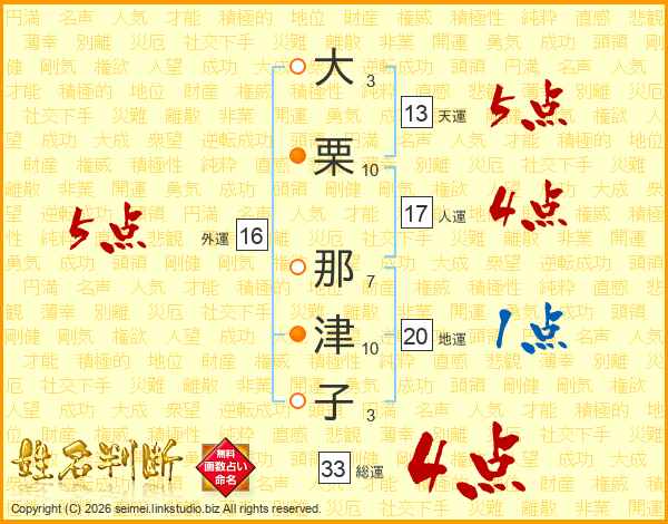 大栗那津子さんの総運は33画の4点!