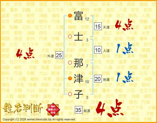 富(12画)士(3画) 那(7画)津(10画)子(3画)