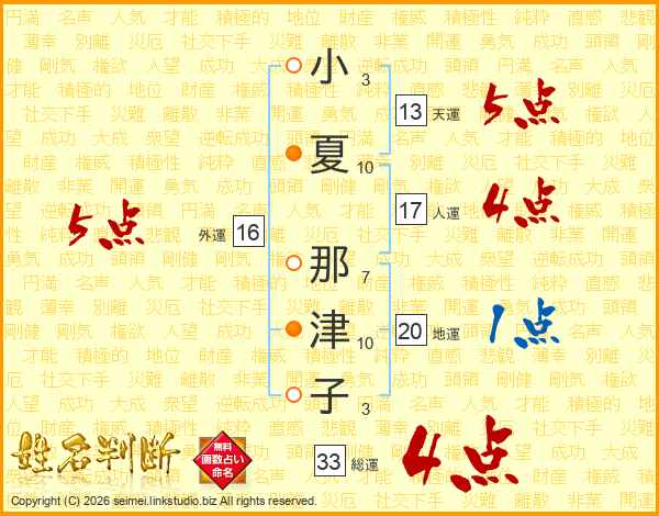 小夏那津子さんの総運は33画の4点!