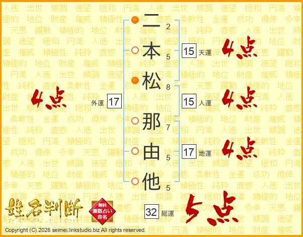 二本松那由他さんの外運は17画の4点!