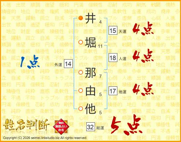 井(4画)堀(11画) 那(7画)由(5画)他(5画)