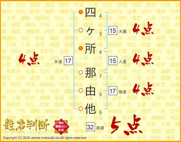 四ヶ所那由他さんの外運は17画の4点!