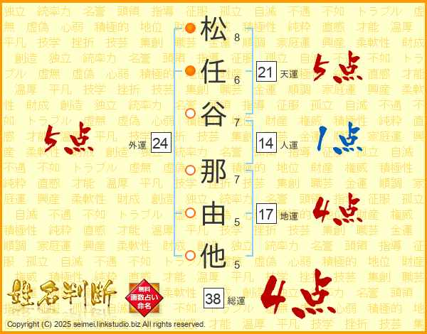 松(8画)任(6画)谷(7画) 那(7画)由(5画)他(5画)