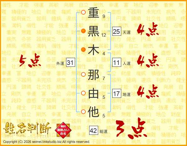 重黒木那由他さんの総運は42画の3点!