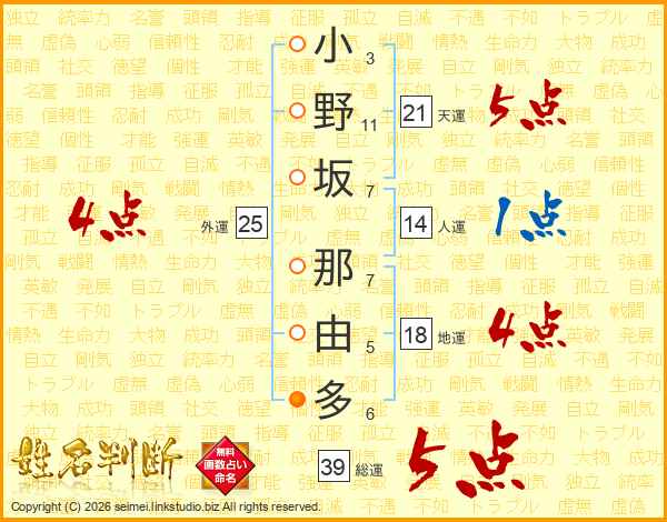 小野坂那由多さんの総運は39画の5点!