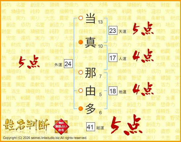 当(13画)真(10画) 那(7画)由(5画)多(6画)