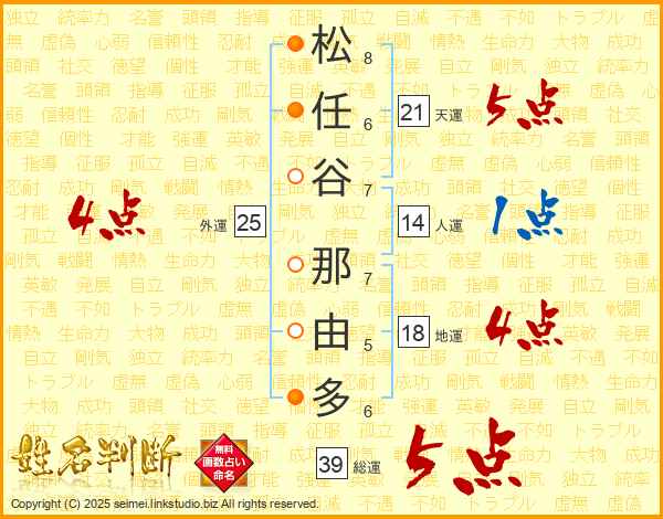 松(8画)任(6画)谷(7画) 那(7画)由(5画)多(6画)