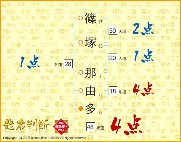 篠塚那由多さんの天運は30画の2点!