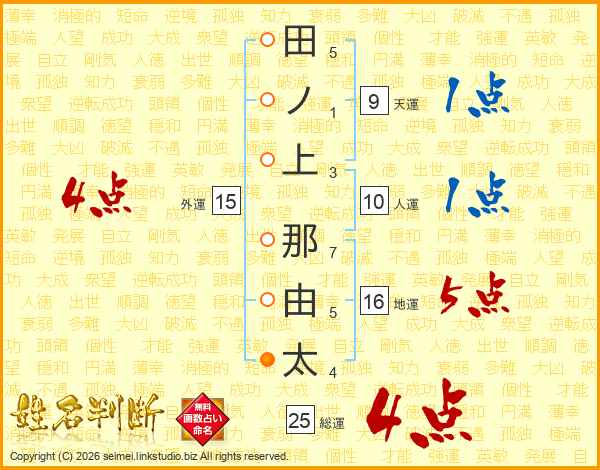 田ノ上那由太さんの総運は25画の4点!