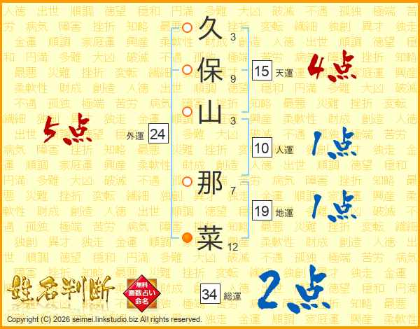 久保山那菜さんの外運は24画の5点!