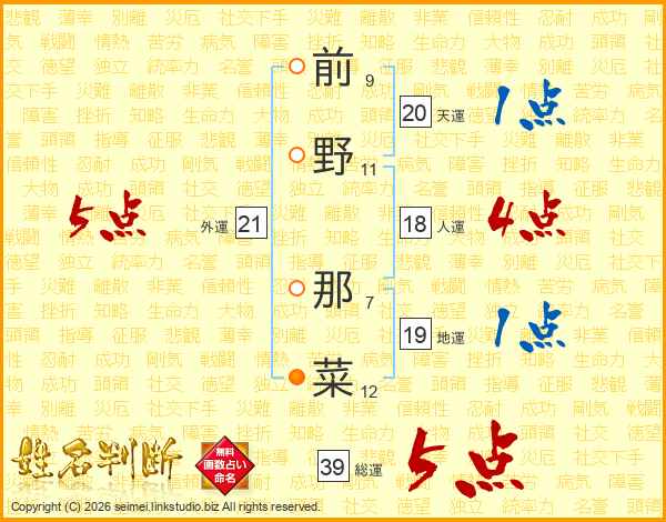前野那菜さんの総運は39画の5点!