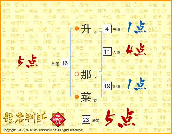 升那菜さんの総運は23画の5点!