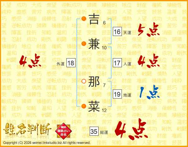 吉(6画)兼(10画) 那(7画)菜(12画)
