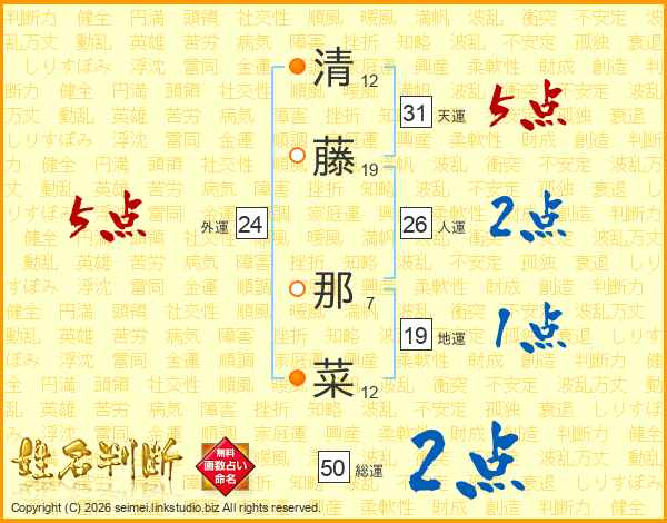 清藤那菜さんの天運は31画の5点!