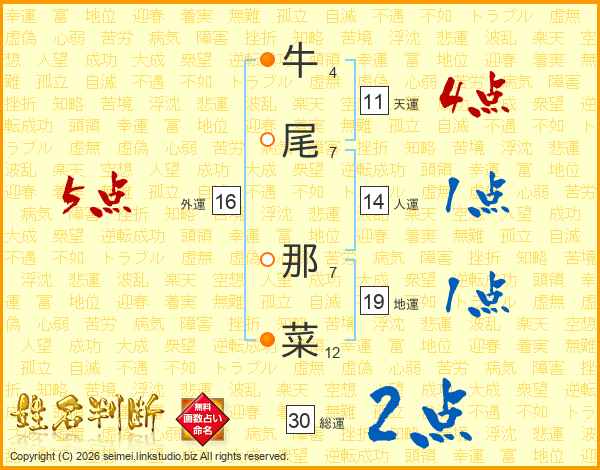 牛尾那菜さんの天運は11画の4点!