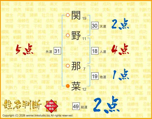 関野那菜さんの天運は30画の2点!