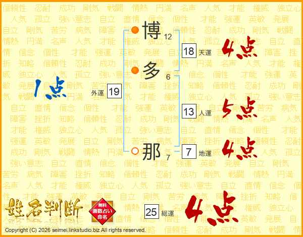 博多那さんの総運は25画の4点!