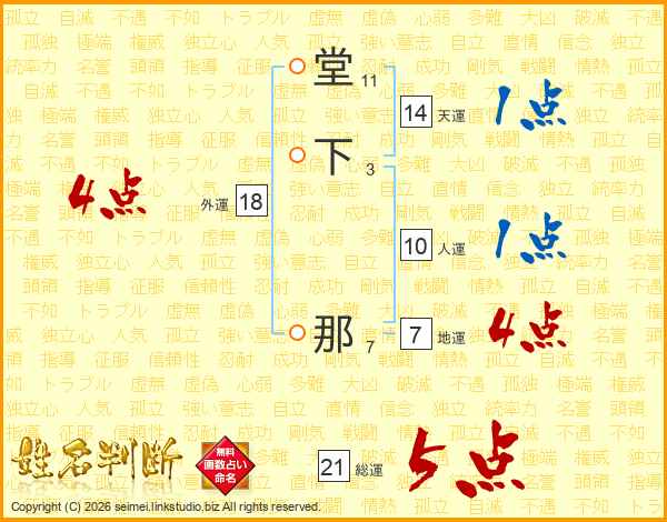 堂下那さんの総運は21画の5点!