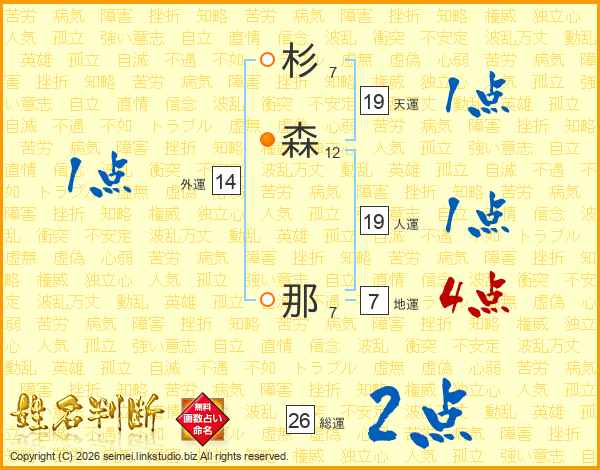 杉森那さんの総運は26画の2点