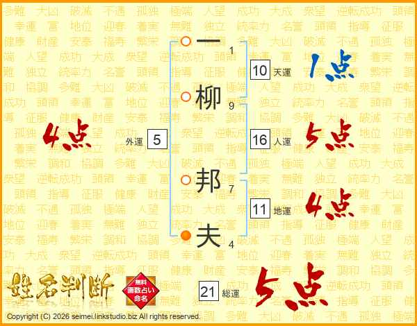 一柳邦夫さんの総運は21画の5点!