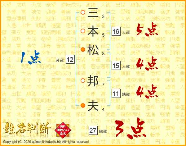 三本松邦夫さんの総運は27画の3点!